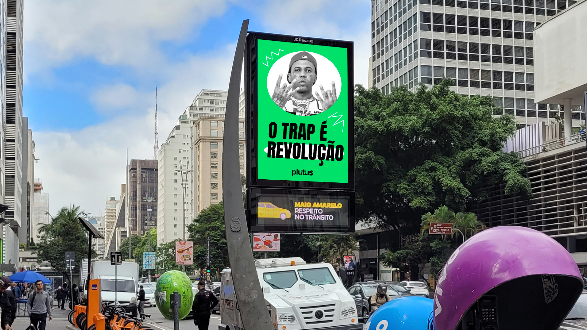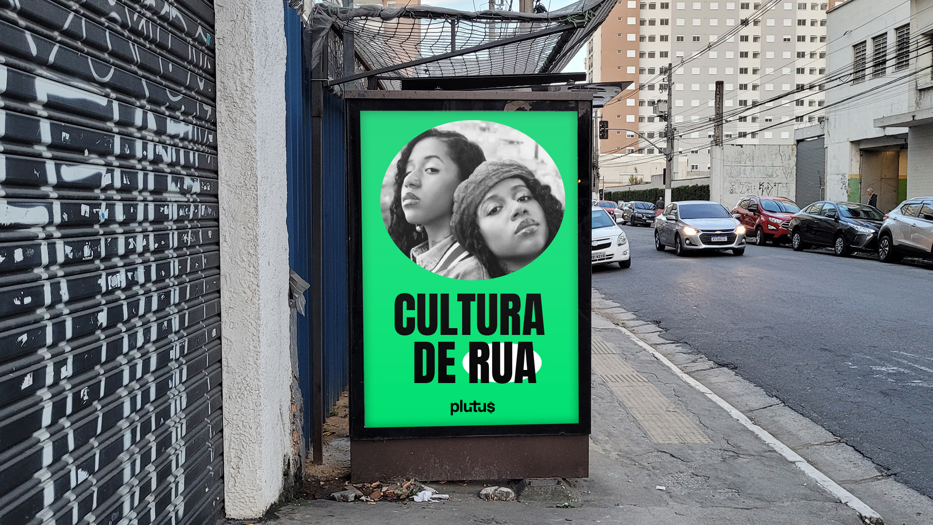 A partir da ideia, foi pensado um logo e uma identidade visual que transmitisse todo o contexto da Plutus: levar informação + confiabilidade + hip-hop + cifrão + cultura de rua.